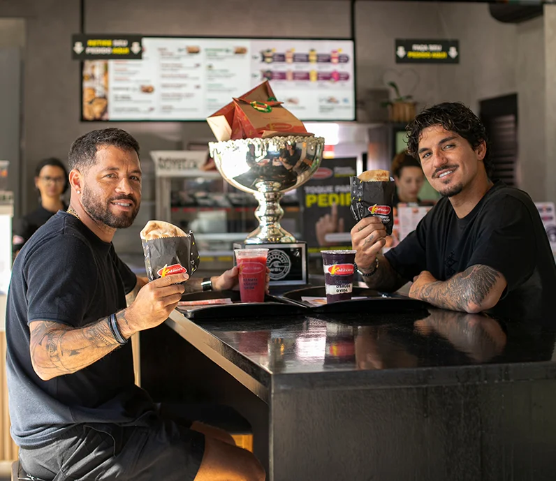 Gabriel Medina, ícone global do esporte, protagoniza uma campanha nacional ao lado do também campeão Adriano de Souza (Mineirinho), destacando a deliciosa “Qualidade de Campeão” dos produtos Mini Kalzone.